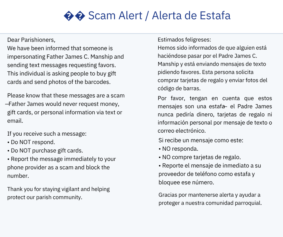 Thank you for visiting us at St. Rose of Lima and may God give you the Peace of Christ, always.